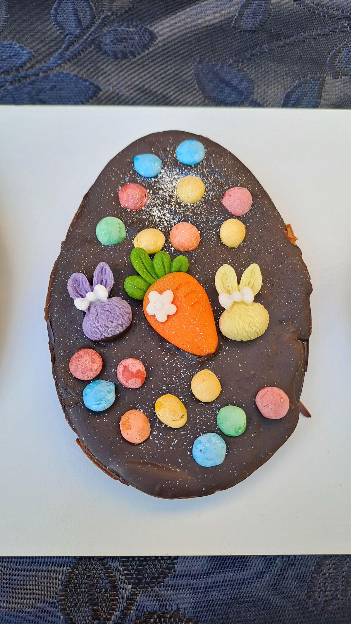 Chocolate semi amargo, relleno de dulce de leche colonial y deco mini rockles y formitas.